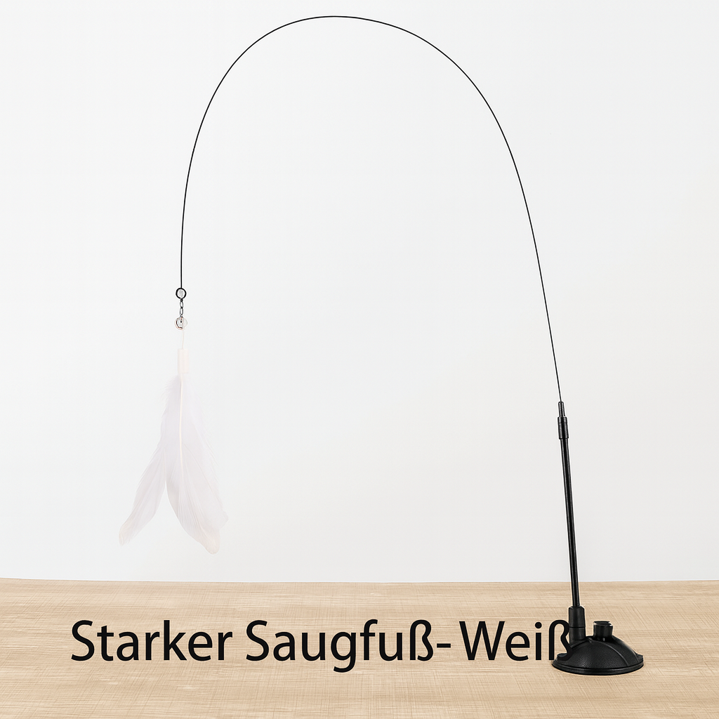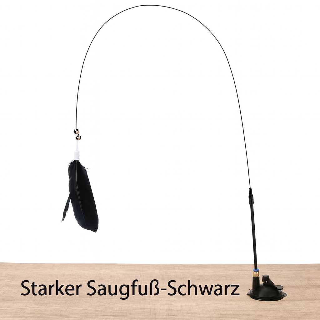 Gefertigt aus natürlichen Federn, elastischem Stahlseil, Glöckchen und Saugnapf, ist das Spielzeug nicht nur langlebig, sondern auch sicher und ungiftig – perfekt für neugierige Stubentiger.